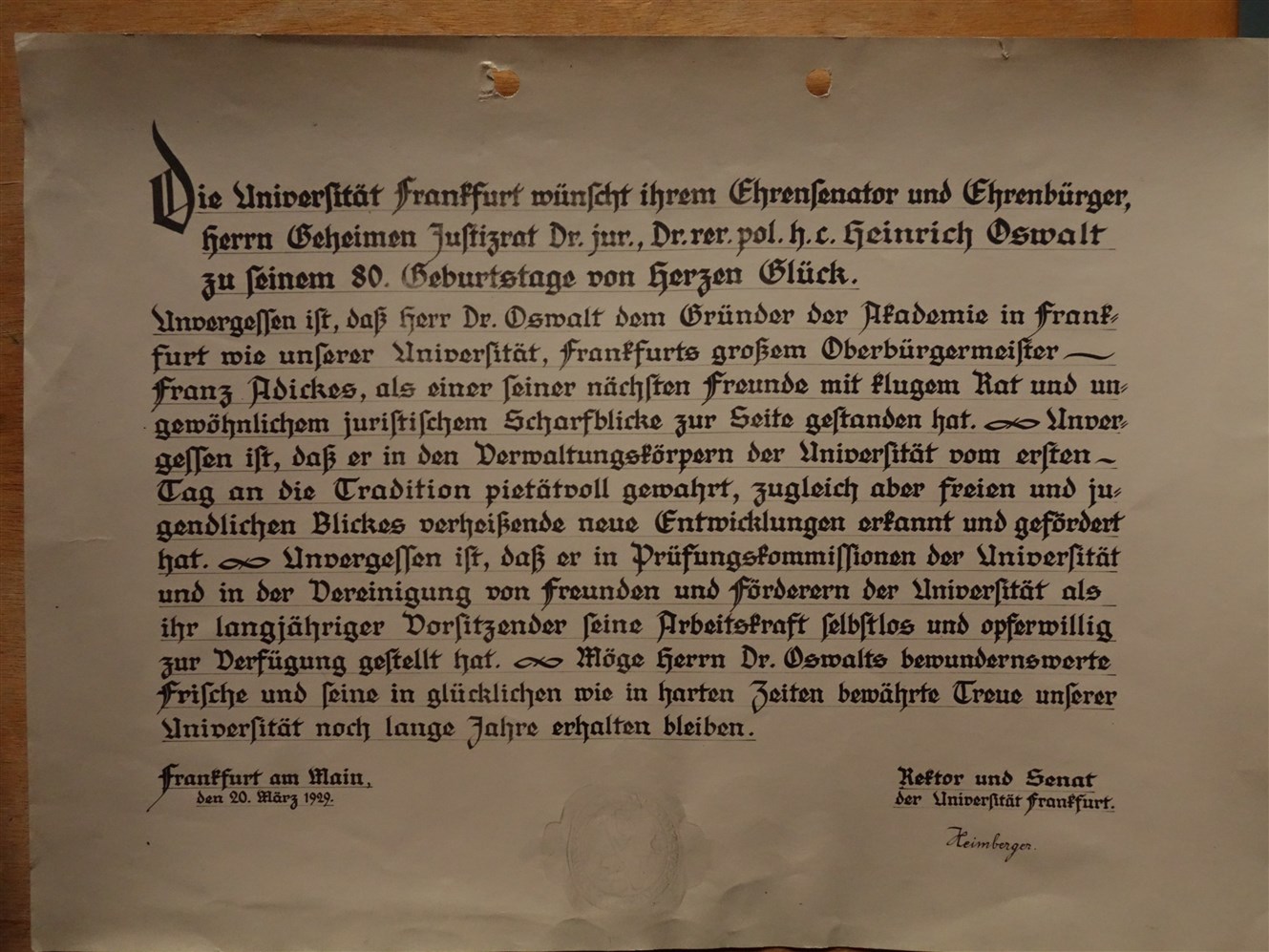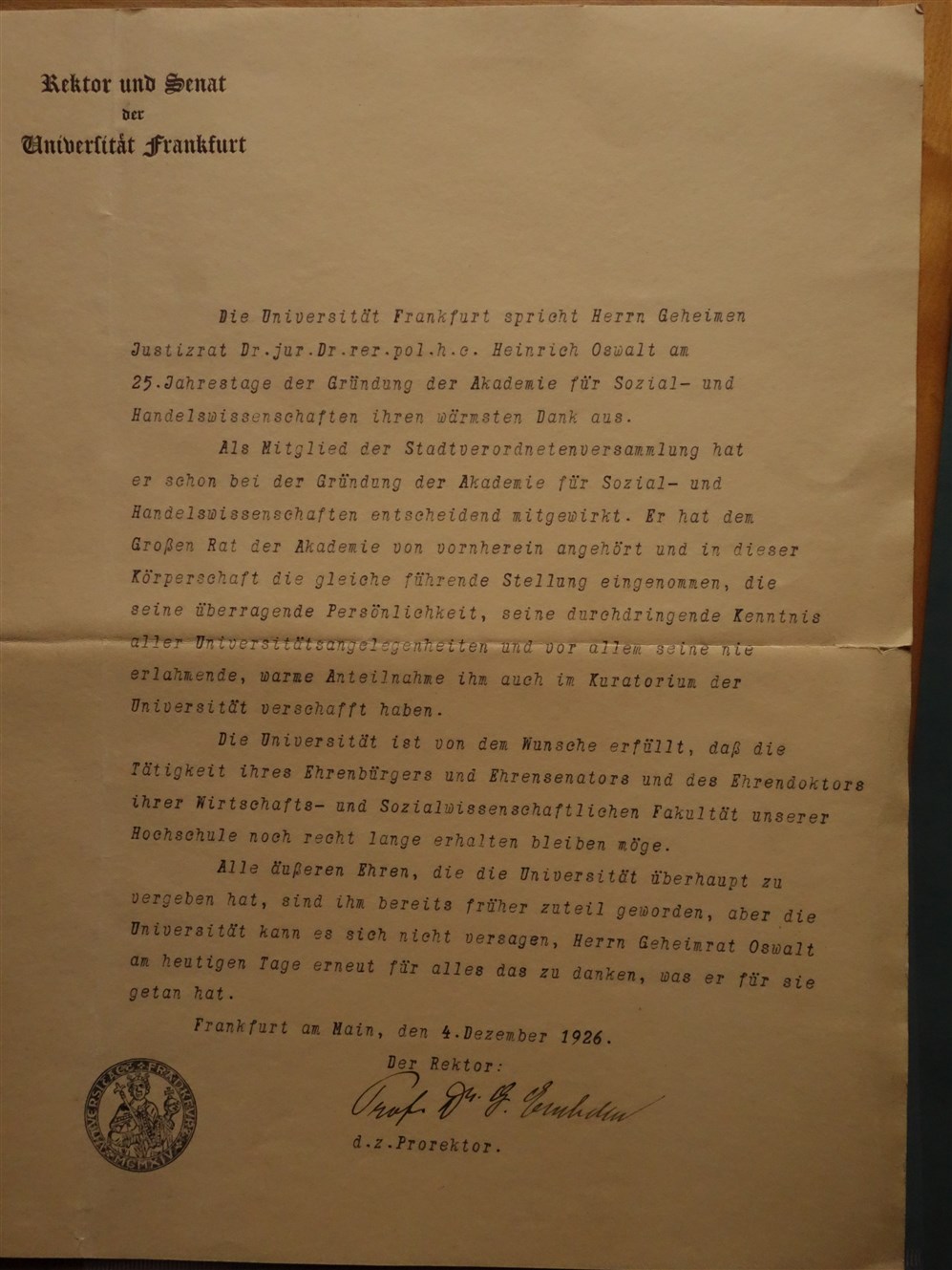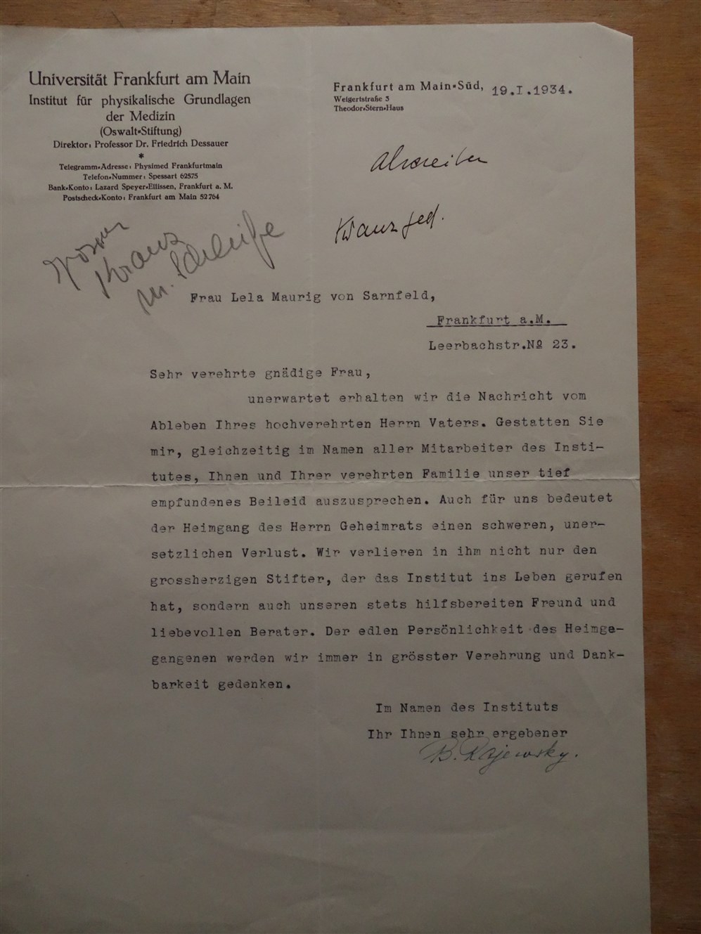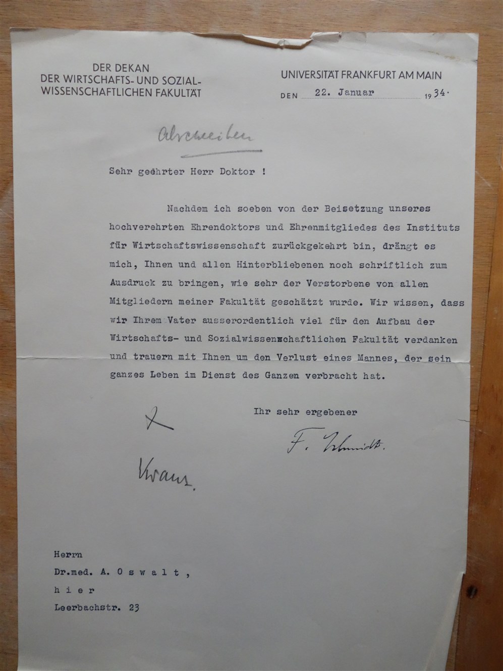 19. Januar 1934 zum Tode Henry Oswalts an dessen älteste Tochter